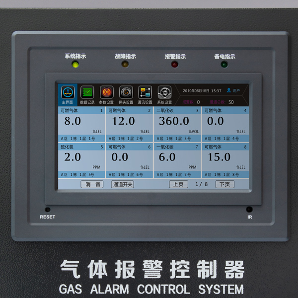 氣體報警控制器連接氣體探測器可持續(xù)監(jiān)測環(huán)境中的有毒有害氣體,根據(jù)接收到的輸入信號顯示被測氣體的濃度,并可通過Rs485數(shù)字信號與上位機通訊??刂破骺稍O(shè)定二級報警值,當監(jiān)測到被測氣體濃度超標時根據(jù)不同的報警級別發(fā)出聲光信號示警。數(shù)據(jù)記錄、報警記錄、系統(tǒng)日志以及報警通道均可通過菜單查詢,并可通過繼電器輸出來控制外部設(shè)備,如排風系統(tǒng)或其它外部設(shè)備。
